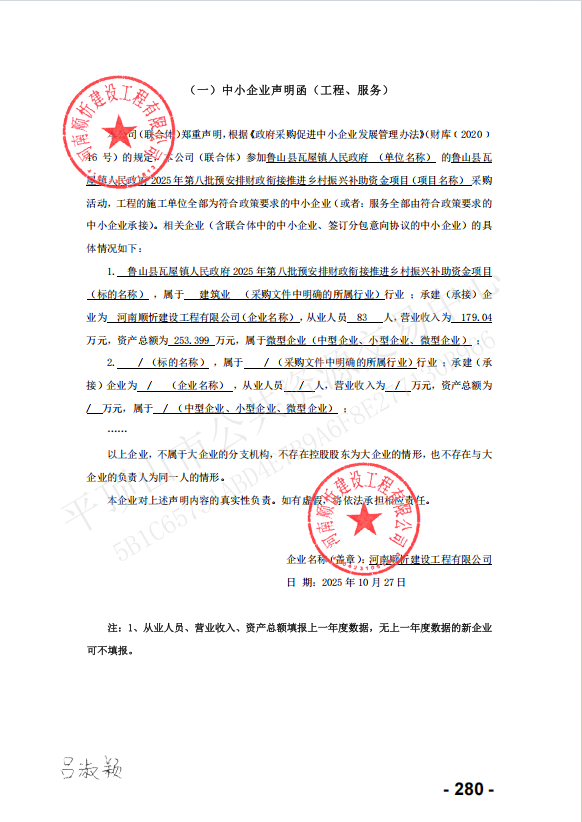 【平公资采20251020号】鲁山县瓦屋镇人民政府2025年第八批预安排财政衔接推进乡村振兴补助资金项目-中标公告 |