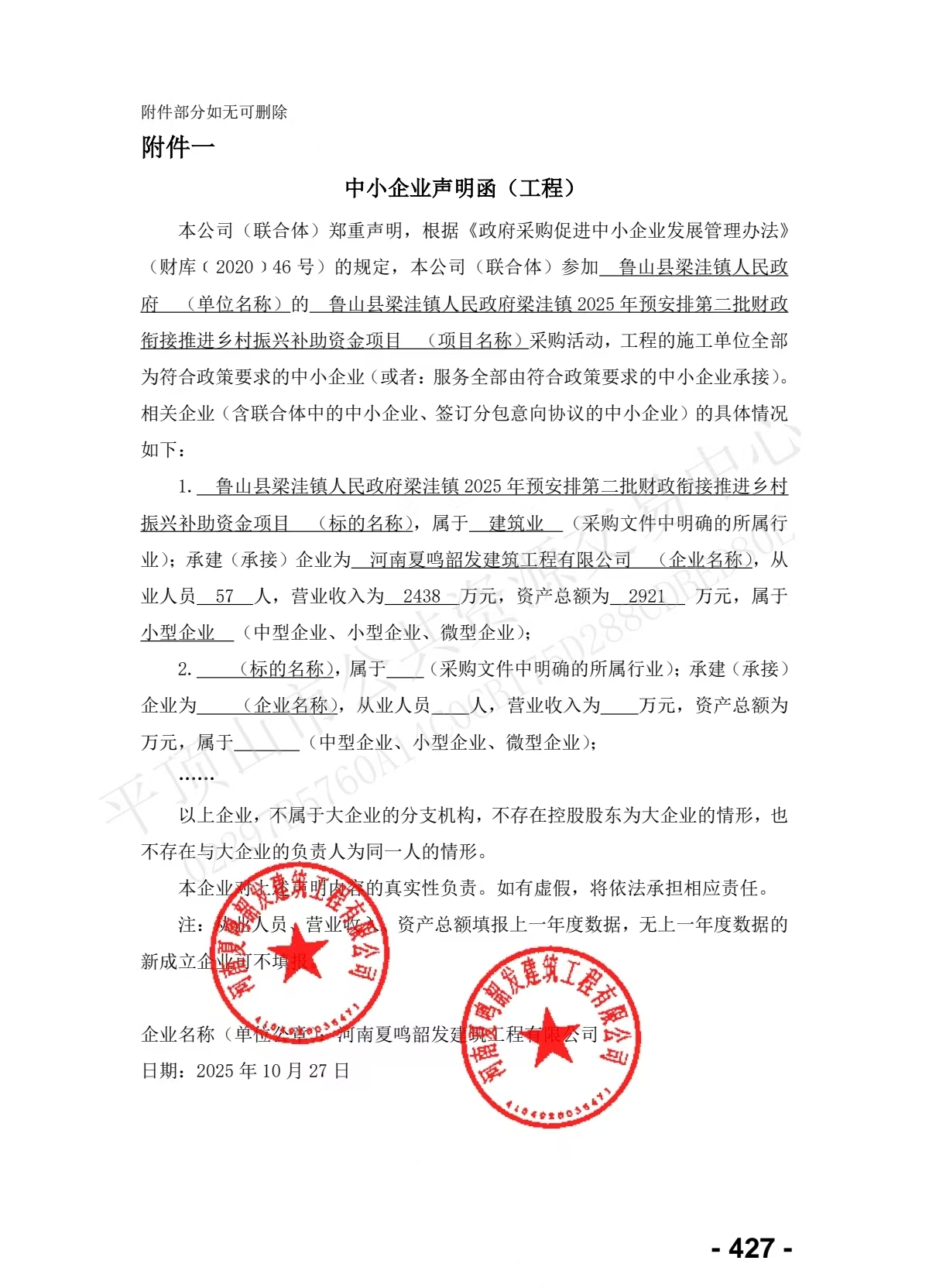 【平公资采2025992号】鲁山县梁洼镇人民政府梁洼镇2025年预安排第二批财政衔接推进乡村振兴补助资金项目-中标公告 |