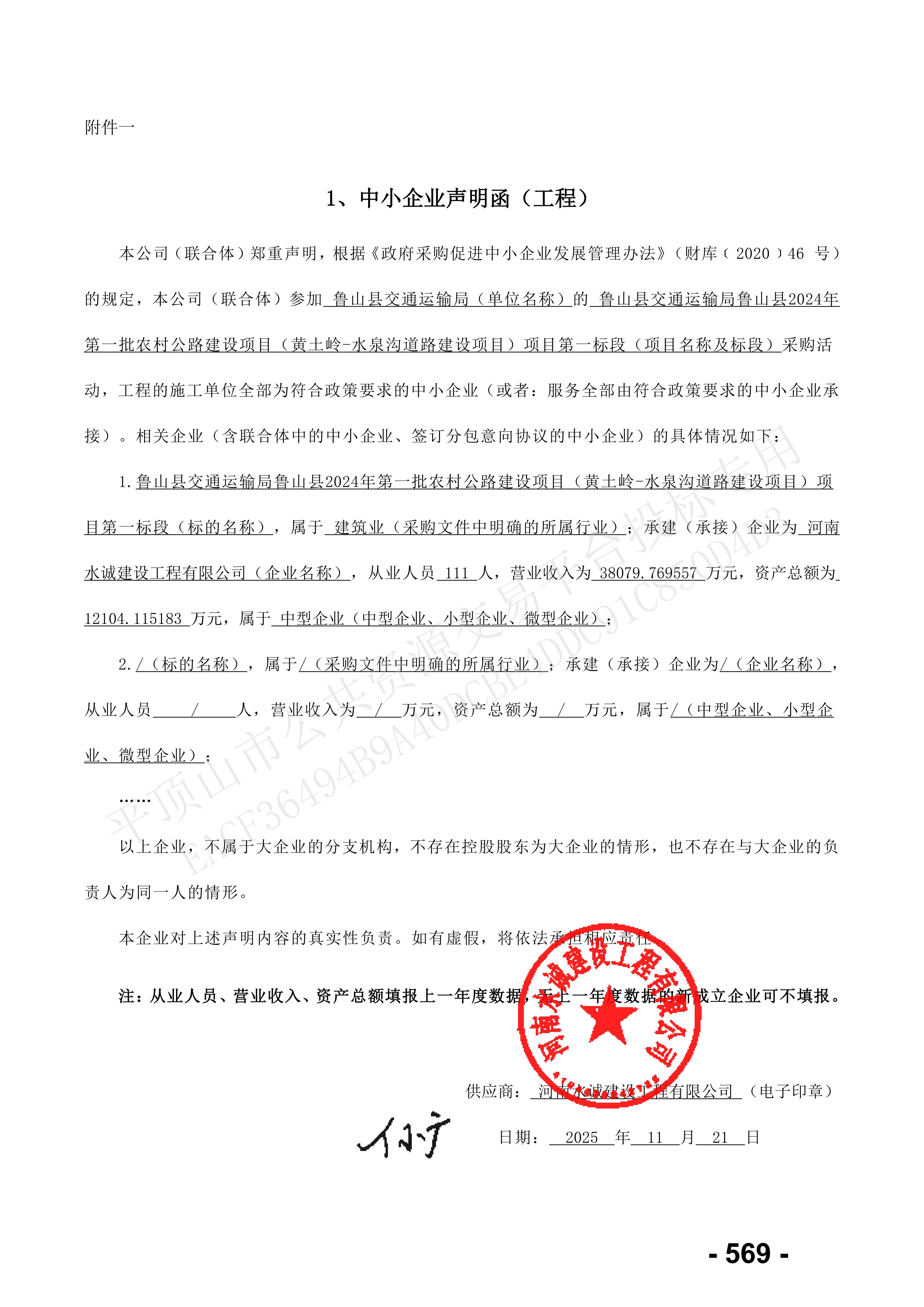 【平公资采20251080号】鲁山县交通运输局鲁山县2024年第一批农村公路建设项目(黄土岭-水泉沟道路建设项目)项目-中标公告 |